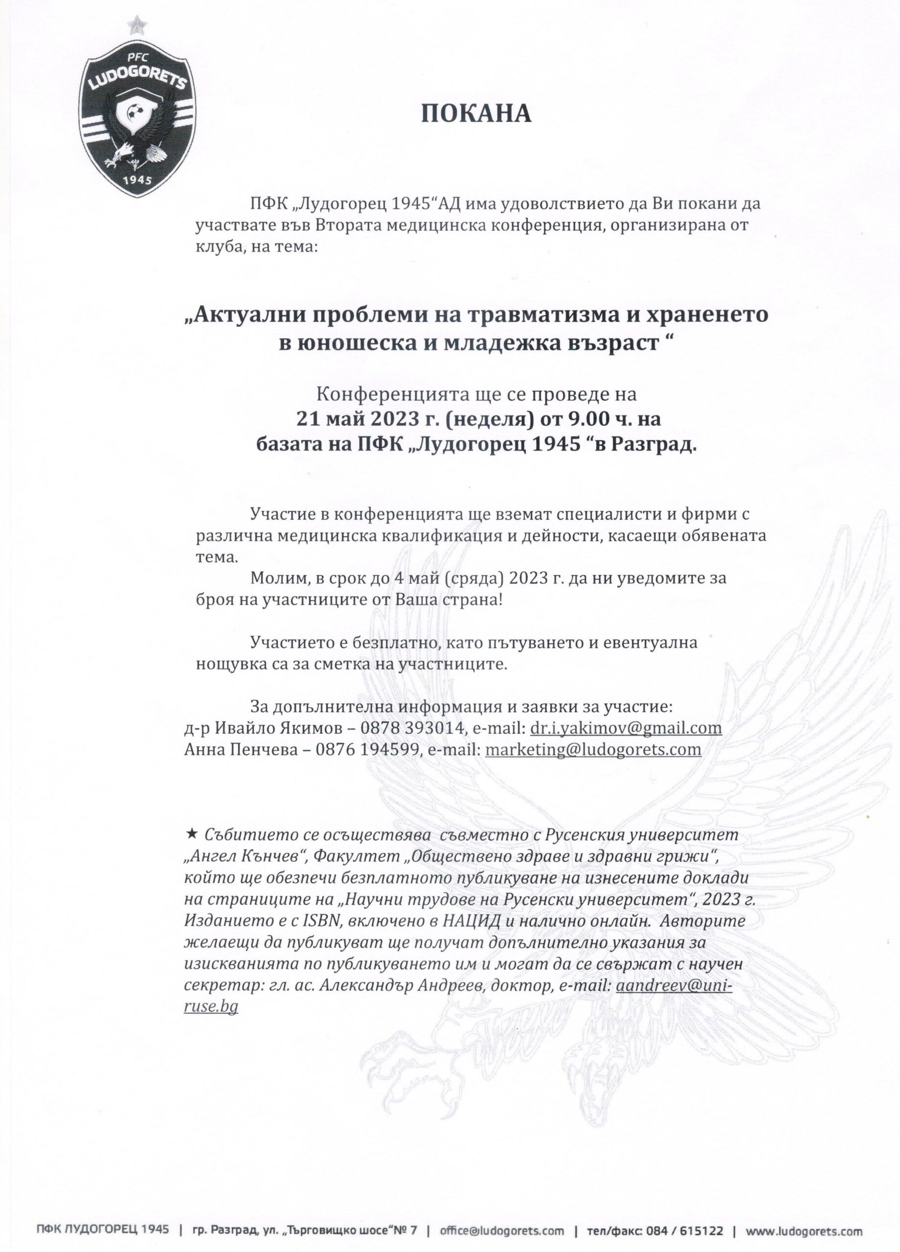 Покана за участие във Втората медицинска конференция, организирана от клуба, на тема: